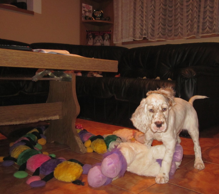 13.10.2011 - z Toníčka se stává ,,šickosetr"..Plyšové hračky kupodivu netrhá, ale hraje si s nima stejně jako šicunky...okoukal pití z napáječky.....a líbí se mu i česání.